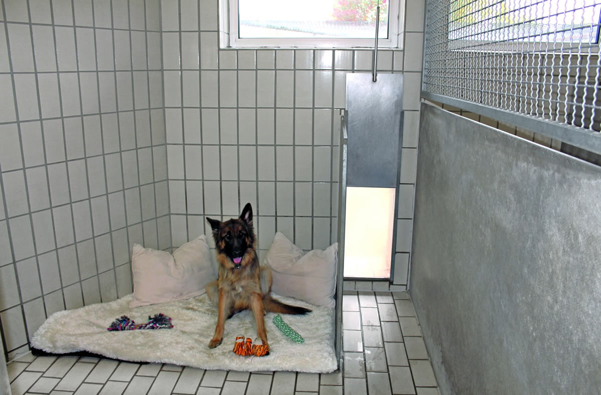 Wir bieten einen hygienischen hellen Innenzwinger mit integrierten frei zugänglichen Außenzwinger. Durch Sichtkontakt zu seinen Artgenossen genießt Ihr Hund das Rudelverhalten in seinen eigenen Räumen mit Bodenheizung und Elektrischer Belüftung.