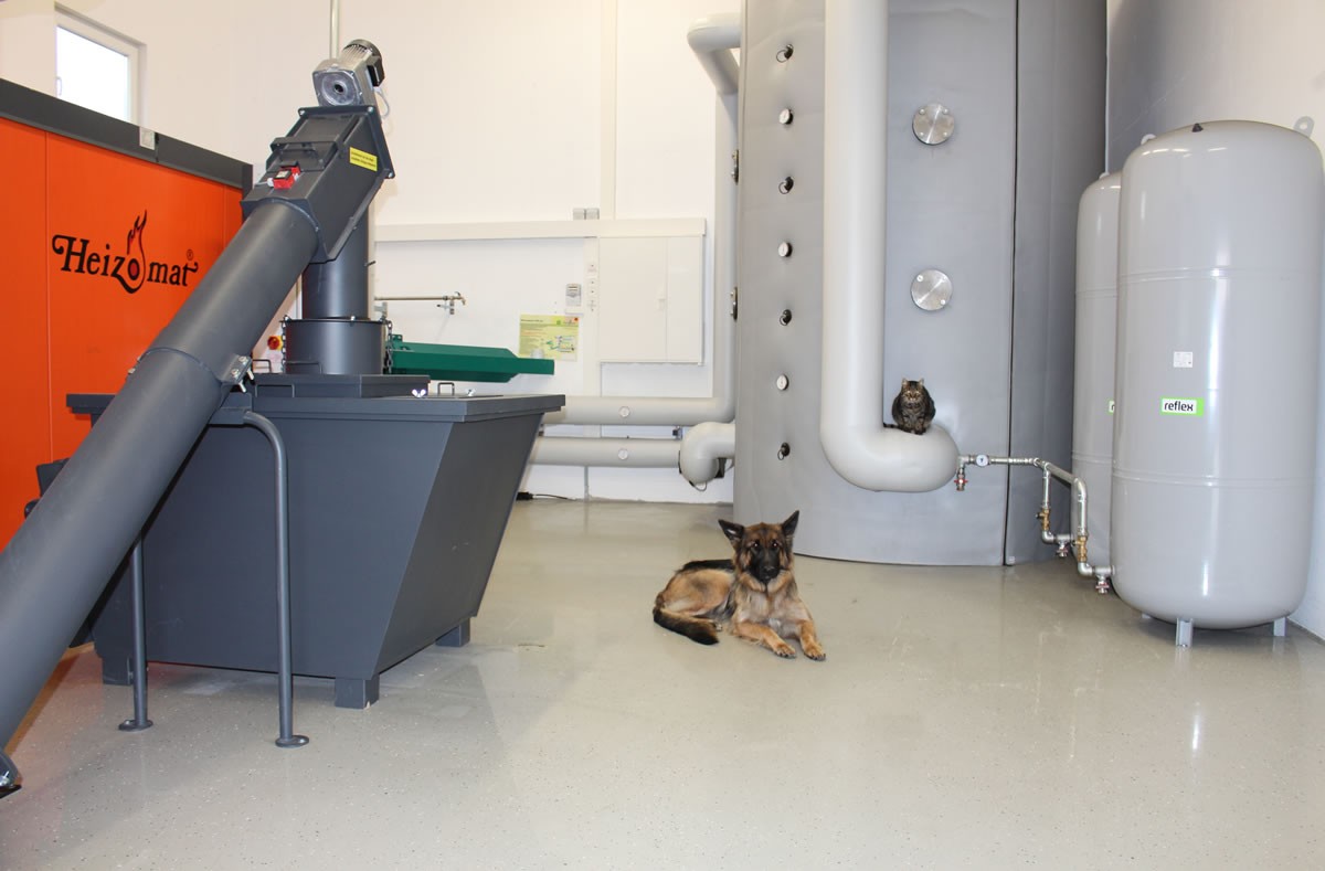 To lead a successful kennels, it is very important to have plenty of time for the animals, and not for heating. So we decided to build a completely new heating house. In order for our labor of the heating system can be reduced to a minimum, we have equipped our company with a completely new heating Fa. HEIZOMAT. The new heating network supplied a 500 kW wood chip heating (RHK-AK 500). Our operation is thus supplied reliably at the highest level with heat and hot water. We have not spared the costs of reinsurance. If a fault immediately a 200 kW oil heater takes over the heat network.